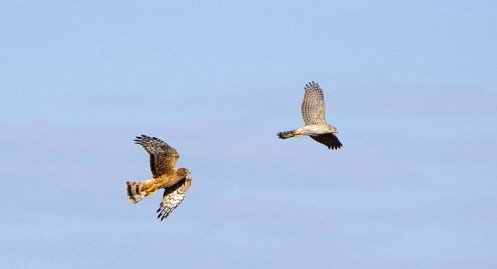 Silhouetted against the red of the cliff, a hawk swoops down and flies parallel to the riverbed, no doubt searching for steelhead (an ocean-going rainbow trout that returns to spawn), or one of the half-pounders that make these waters their home. Whenever Alice and I come here, we never fail to see at least one of the indigenous Cooper’s or Red-tailed hawks making a grand show like this.